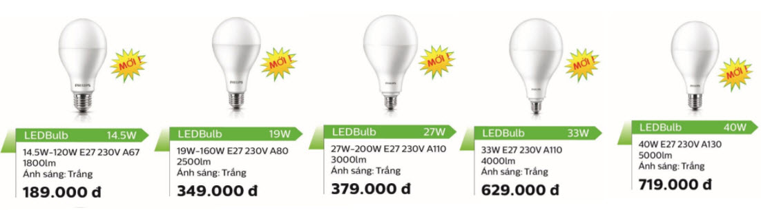 Thông tin sản phẩm bóng đèn Ledbulb Philips siêu sáng 40W 5000Lm 6500K A130
