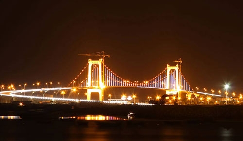 Năm 2008, lần đầu tiên công nghệ chiếu sáng bằng đèn LED được ứng dụng chiếu sáng công trình công cộng tại Việt Nam và được lắp tại cầu Sông Hàn và Thuận Phước của TP. Đà Nẵng. Theo đó, mỗi bộ đèn chỉ có công suất tiêu thụ 25W, nhưng khoảng cách ánh sáng có thể đưa xa được 20m, góc độ chùm ánh sáng có thể đạt từ 20-450 so với đèn cao áp 250W. Đặc biệt tính ưu việt của hệ thống chiếu sáng đèn LED là có thể áp dụng kết hợp công nghệ điều khiển không dây giúp điều chỉnh màu sắc và cường độ ánh sáng, cho hệ thống chiếu sáng hoạt động linh hoạt hơn, uyển chuyển về màu sắc hơn, giúp cho thay đổi hệ thống màu sắc của đèn LED từ thấp lên cao, từ trái sang phải và ngược lại”.