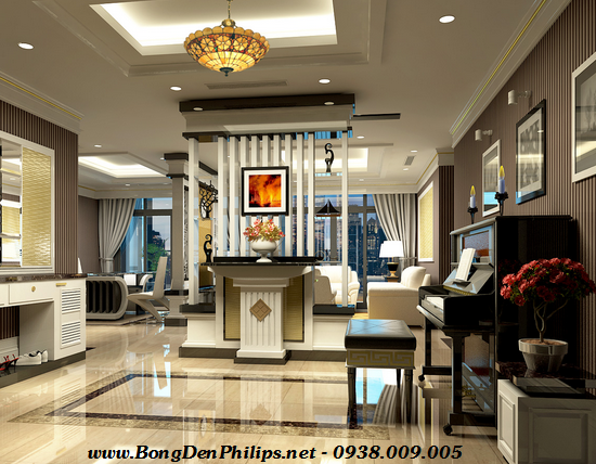 Bóng đèn compact Philips 14W-3U sử dụng trong chiếu sáng phòng khách