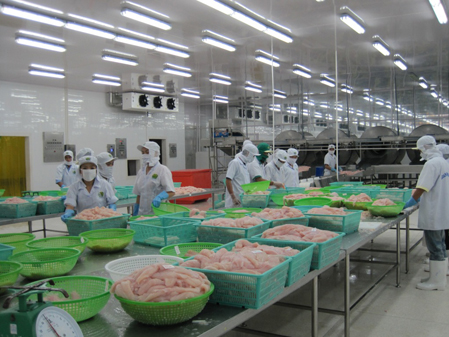 Sử dụng bộ đèn huỳnh quang chống thấm Philips TCW060 trong nhà máy chế biến thuỷ sản