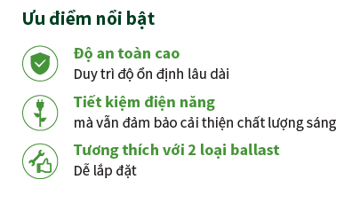Toàn bộ bóng đèn cao áp Philips Metal Halide Plus đều có khả năng hoạt động thay thế cho bóng cao áp thủy ngân (HPL) cũng như bóng cao áp natri (SON). Điều này giúp tiết kiệm chi phí đầu tư ban đầu vì không phải thay bộ điện khi chuyển sang bóng cao áp Metal Halide.