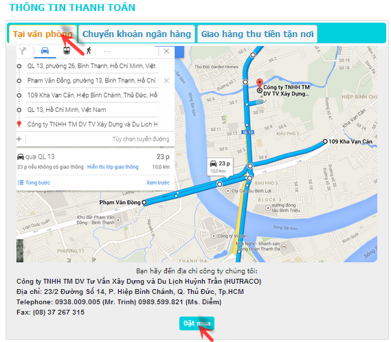 - Đến văn phòng, cửa hàng HUTRACO mua hàng và thanh toán