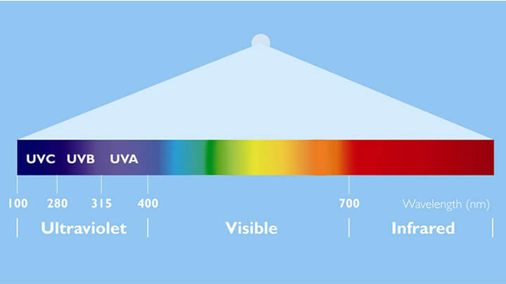 Ánh sáng Ultra-Violet (UV) vô hình với mắt người và được chia thành UV-A, UV-B và UV-C.