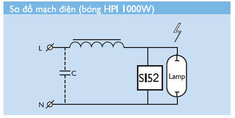 Sơ đồ đấu dây bộ đèn cao áp Metal Halide với Ballast (Tăng phô/Chấn lưu) điện từ đèn cao áp Philips BHL 1000W L202