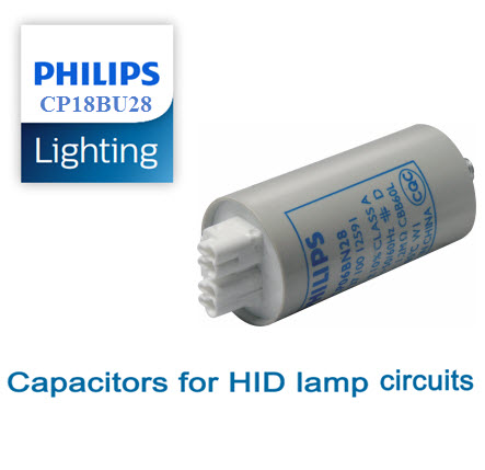Tụ đèn cao áp Philips CP18BU28 CAP 250V 18uF được sử dụng kết hợp với các linh kiện trong bộ đèn cao áp Philips (đèn Metal Halide, đèn thủy ngân cao áp, đèn natri Sodium) bao gồm: