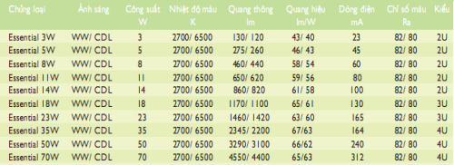 Bóng đèn Compact Philips (CFL) Essential có chất lượng vượt trội với giá rất cạnh tranh, đa dạng với công suất thiết kế 3W, 5W, 8W, 11W, 14W,18W, 23W, 35W, 50W và 70W Ánh Sáng Vàng (Warrm White) và Ánh Sáng Trắng Ban Ngày (Cool Daylight).