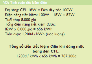 Tất cả các loại bóng đèn compact tiết kiệm điện của Philips đều tiết kiệm năng lượng từ thời điểm bạn bật công tắc. Trong suốt vòng đời của chúng, những bóng đèn này dùng ít kW hơn, giúp giảm hóa đơn tiền điện. Mức tiết kiệm năng lượng thay đổi khác nhau tùy theo dạng bóng đèn và công nghệ.