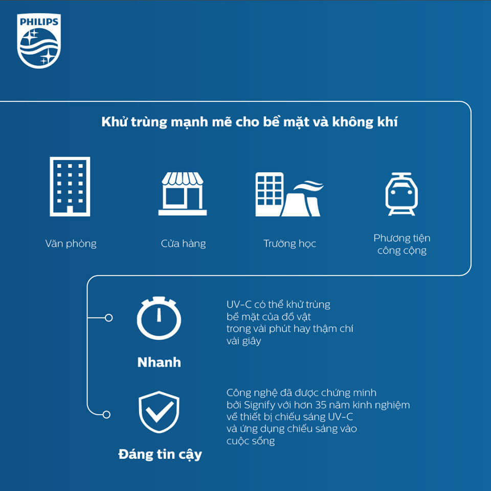 Tại thời điểm này, tất cả các đèn UV-C của chúng tôi đều không được chứng nhận hoặc phê duyệt là thiết bị y tế theo bất cứ luật hiện hành nào; do vậy, hiện nay Signify và/hoặc mọi công ty thuộc tập đoàn đều không có ý định sử dụng chúng làm thiết bị y tế ở bất cứ đâu trên thế giới.