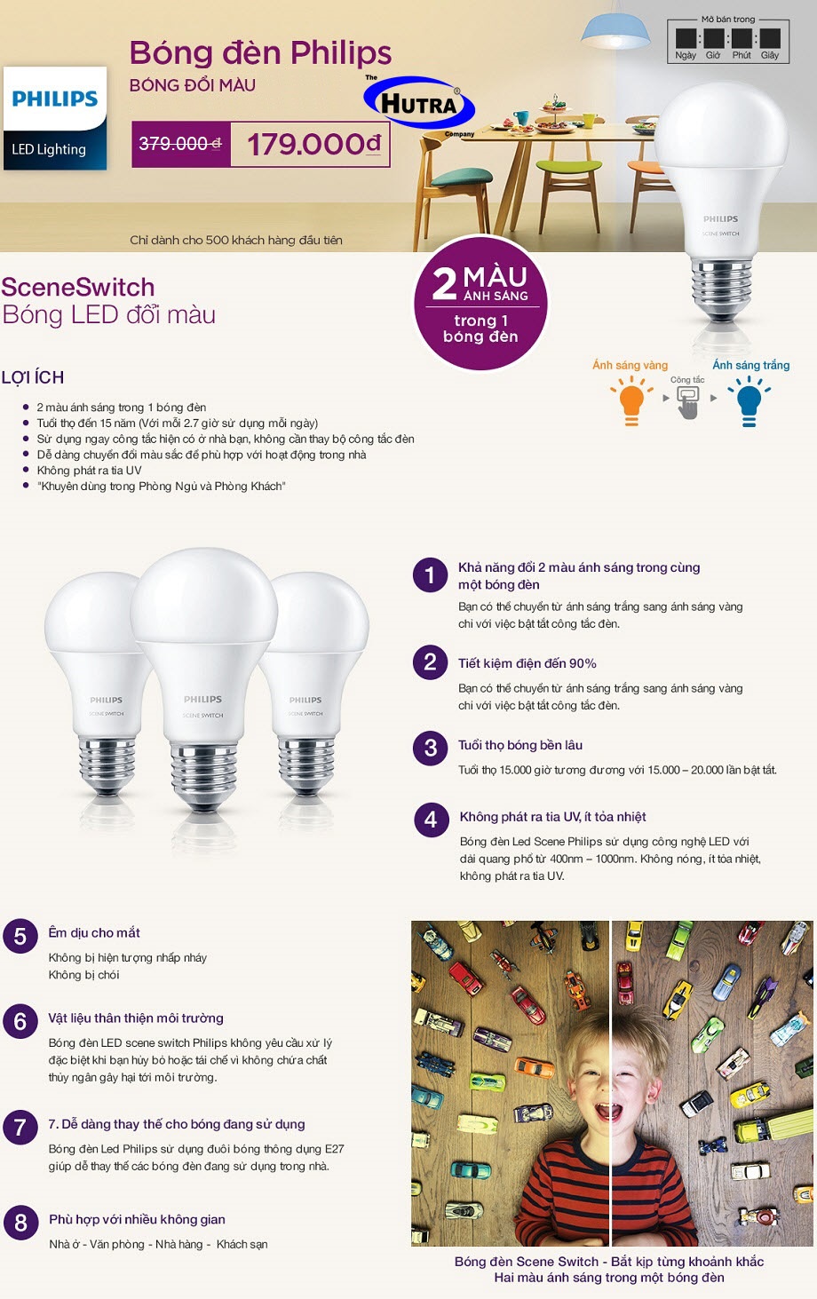 Thật tuyệt vời khi giờ đây chỉ với 379.000đ bạn đã được sở hữu ngay Combo 2 Bóng đèn LED Bulb Philips Scene Switch 9.5W E27 ánh sáng đổi màu vàng-trắng 3000/6500K cực hấp dẫn chỉ có tại # HUTRACO. Chương trình này chỉ áp dụng cho 500 khách hàng nhanh tay nhất click