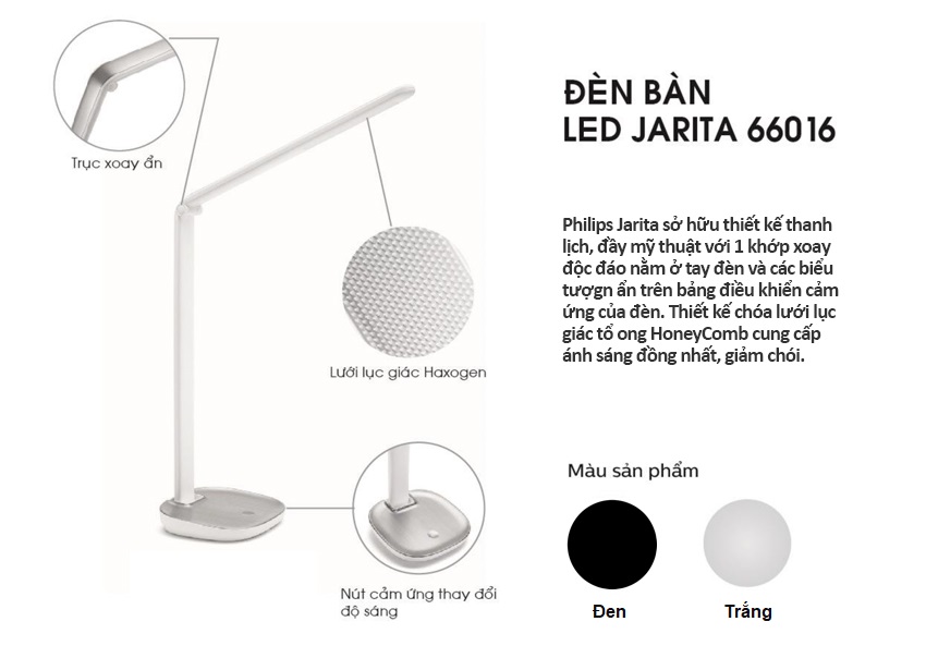 Không nhấp nháy bảo vệ sức khỏe đôi mắt bộ đèn bàn Led Philips 66016 Jabiru table lamp LED white 1x4.5W tuân thủ theo chuẩn test IEC 62778