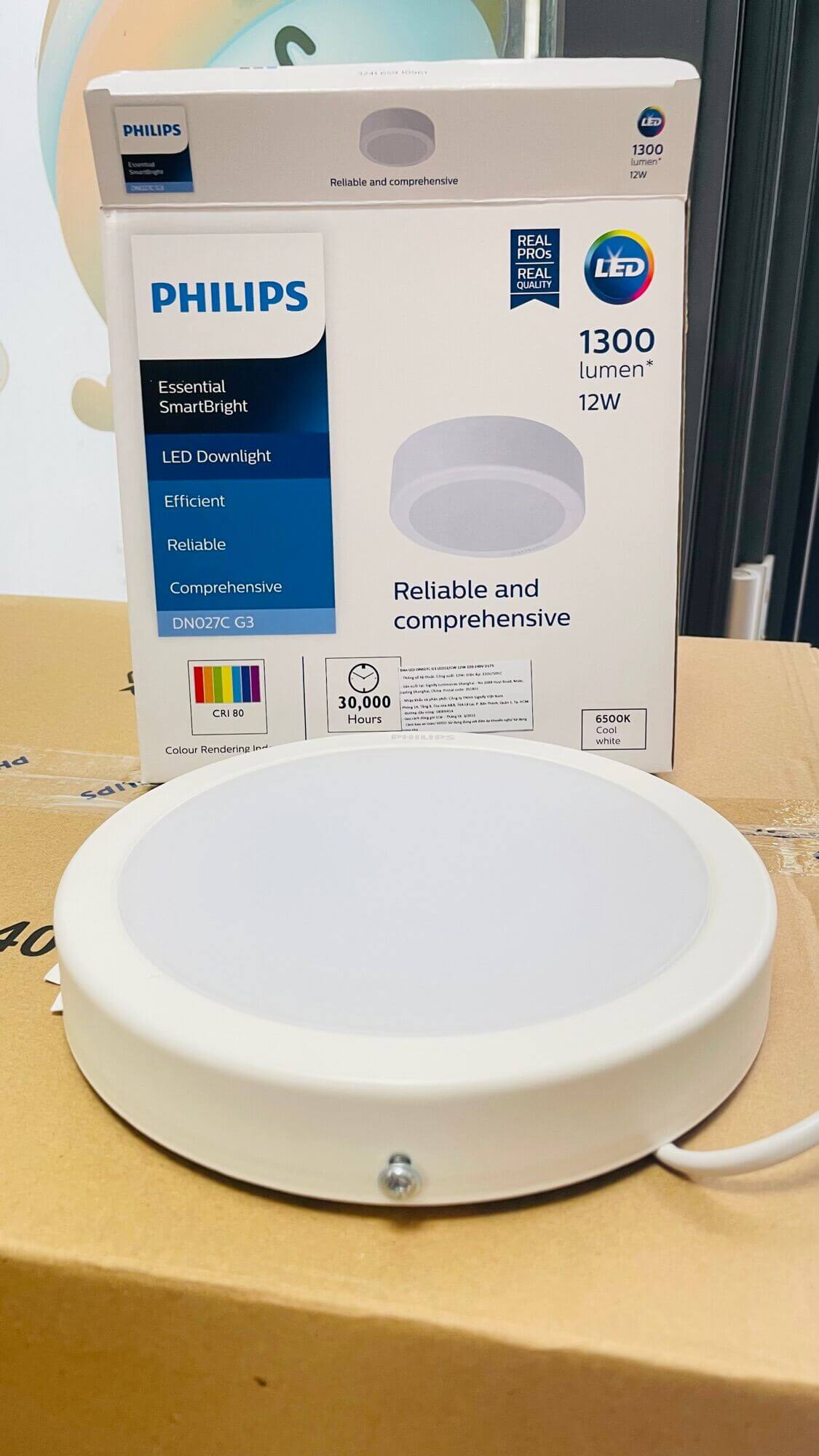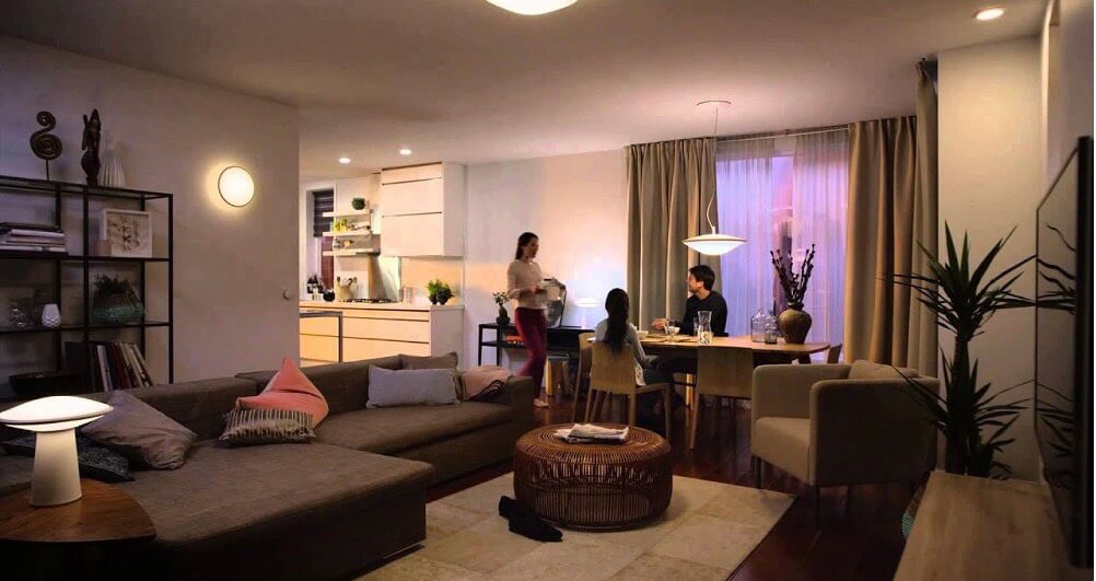 Hình ảnh bóng đèn LED Ốp Trần Lắp Nổi Philips DN027C G3 được gắn ở phòng khách và nhà bếp