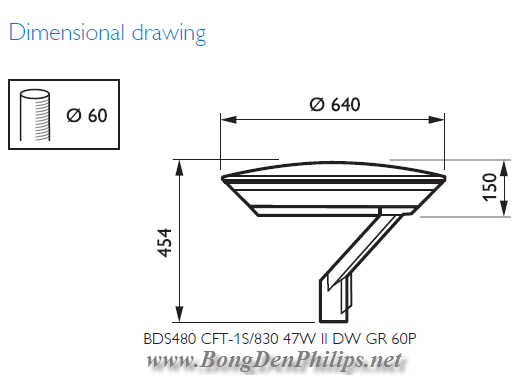 Kích thước bộ đèn đường Led Philips BDS480