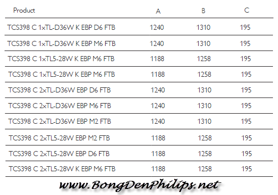 Thông số kỹ thuật bộ máng đèn huỳnh quang Philips 1.2m TCS398