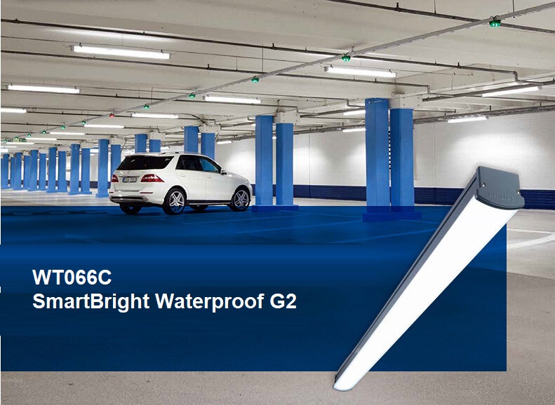 Hệ thống GreenParking sử dụng máng đèn chống thấm Led Philips SmartBright Waterproof G2 WT066C là một sự đổi mới được sử dụng để thay thế các bộ đèn không thấm nước truyền thống bằng đèn huỳnh quang hoặc LEDtube, cung cấp chất lượng ánh sáng tốt hơn với khả năng tiết kiệm 80% chi phí năng lượng và giảm đáng kể chi phí bảo trì.